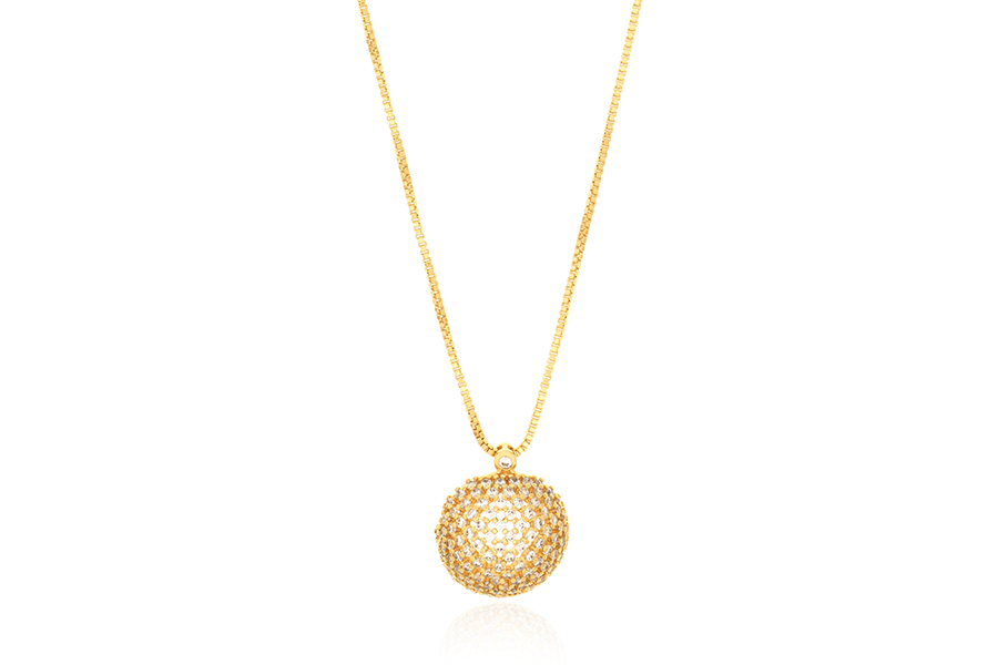 GARGANTILHA BANHADA EM OURO, VENEZIANA 1,50mm ESPESSURA, 40cm COMPRIMENTO E GOTA 25X18mm, COM FORRO DE ZIRCÔNIAS, PARA TODAS AS CORES DE PEDRA