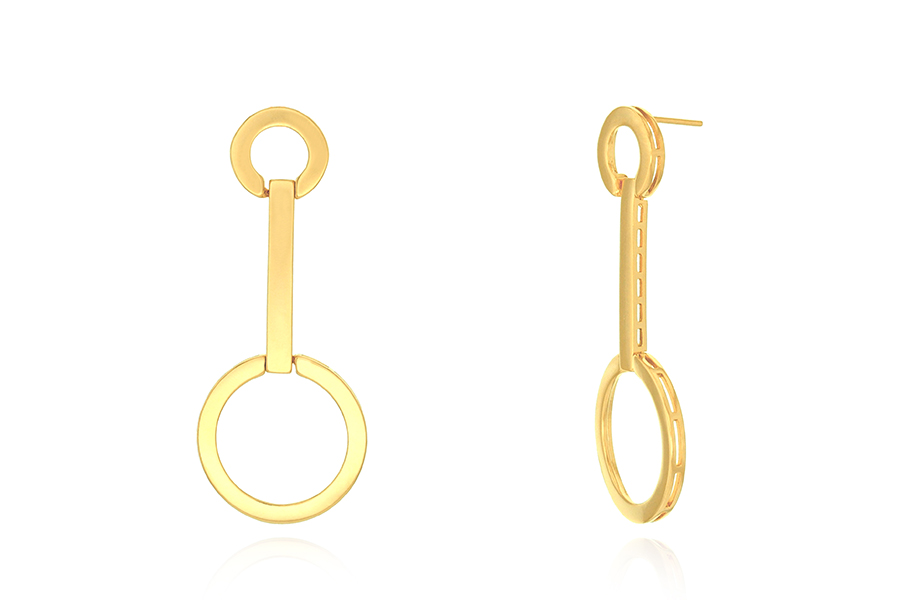 BRINCO BANHADO EM OURO, 29mm DE ALTURA, TARRAXA ASA, LISO OU ACETINADO, COLEÇÃO ALQUIMIA